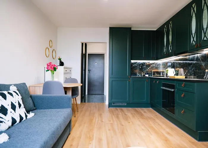 The 25 m² Warsaw Studio Apartment - City View, Parks Nearby By Rentujemy is located 6 km from the POLIN Museum of the History of Polish Jews and merely a 7-minute walk from Fort Rakowiec. Wi-Fi is provided for both business and leisure activities.